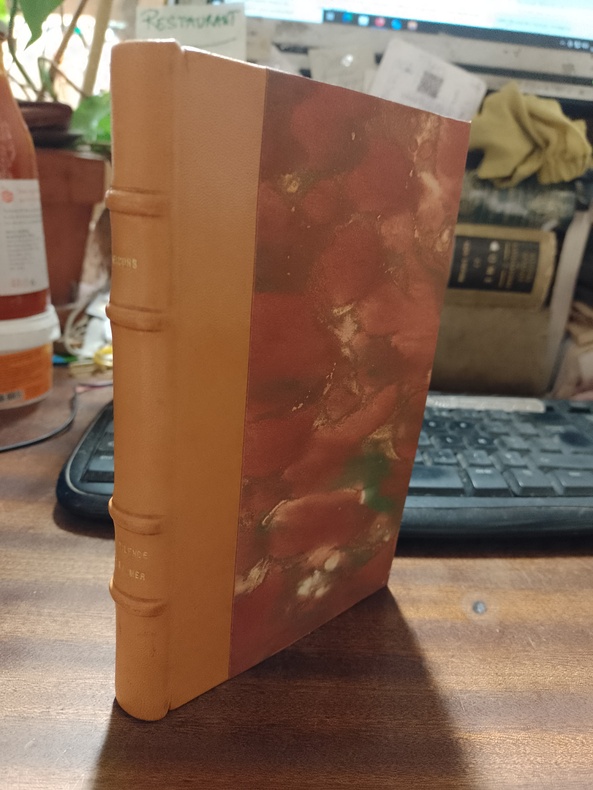 Paris, Aux Editions Terres Latines, 1952, in-8 (16x20,5cm), demi-reliure à bandes, dos à 4 nerfs, titre à l'or, plats ornés d'un papier simili cuir reptile encadré d'un filet doré, tranche de tête dorée,, 170p. Un des 336 exemplaire sur Vélin teinté, après 7 ex. sur Japon enrichis d'un dessin original, 7ex. sur Japon avec suite. Suivent 18 ex. nominativement désignés réservés à l'Editeur et aux Amis. Couverture et dos conservés. Bel état.