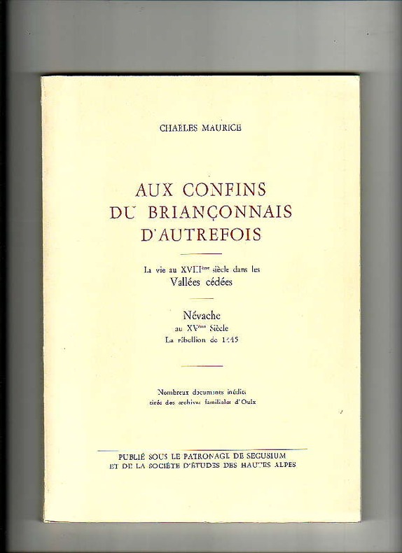 Publié sous le Patronage de Segusium et de la Société d'Etudes des Hautes Alpes, 1976, 289 p., avec un envoi de l'auteur, pleine toile, plats d'origine conservés, dos insolé, annotations au dos du premier plat, bon état pour le reste.