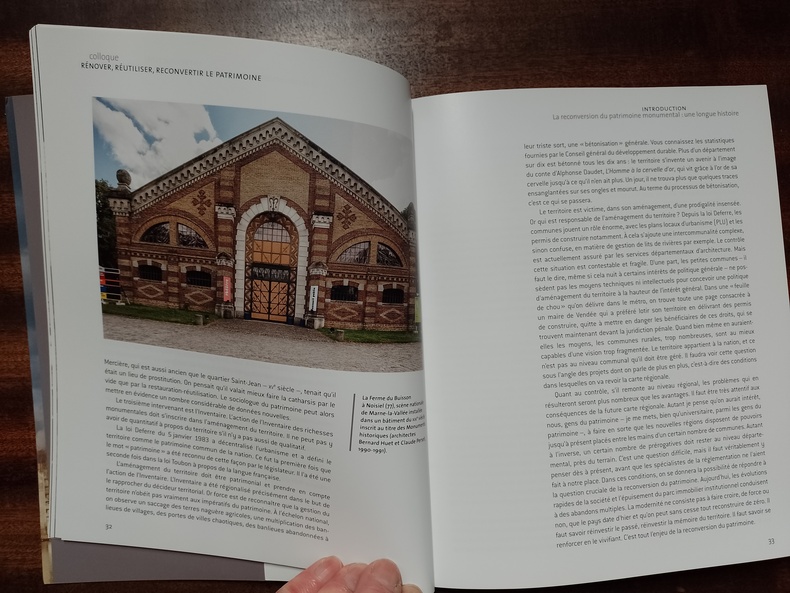 Paris, Inventaire général / Somogy, 2015, 18,5 x 26, 240 pages cousues sous couverture rempliée illustrée. Iconographie en noir & blanc et couleurs. Actes du colloque régional des 15 et 16 septembre 2014. "Reconvertir le patrimoine, c'est le préserver. Si cette affirmation sonne comme une évidence, la Région Ile-de-France a souhaité mettre en lumière toute la complexité des problématiques liées à ce type de reconversion : comment reconvertir un bâtiment tout en respectant son histoire, ses matériaux, son âme ? De la transformation d'une ferme en résidence étudiante à Champs-sur-Marne, jusqu'à l'écriture du roman national vietnamien à travers l'exemple de la rénovation de la citadelle de Hanoï, les intervenants du VIIIe colloque régional apportent de passionnantes réponses. Ces actes présentent l'intégralité des deux jours de débats."