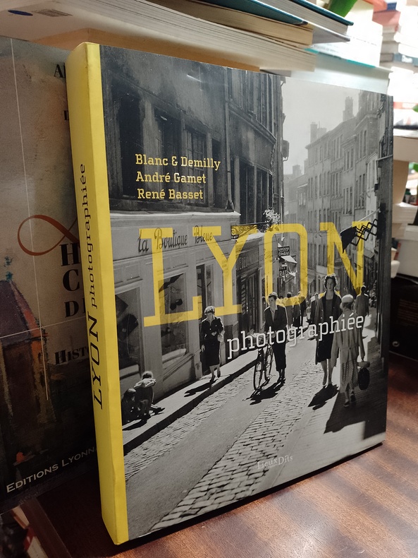 Lyon, Lieux Dits, 2018, 25 x 30, 296 pages sous cartonnage éditeur et jaquette illustrées. Photographies noir & blanc. "Ils l'ont photographiée sous toutes les coutures, de haut, en bas, de jour, la nuit, de près, de loin, au fil de l'eau et du temps. La ville, leur ville, son atmosphère tantôt brumeuse, tantôt lumineuse, ses montées qui n'en finissent pas de descendre, ses rues qui se prennent pour des avenues, ses places qui ont l'allure de grandes plages. Et que dire de ses quais ! Qui sont-ils, ces photographes qui nous livrent 80 ans de Lyon en mutation ? Tout d'abord Blanc G Demilly, deux noms pour une signature, et laquelle ! Deux vies pour la photographie et des clichés du Lyon des années trente, véritables tableaux de maître. Dans leur mouvance, René Basset, Prix Niepce 1958. Aux aguets, il évalue sa ville et fixe l'air du temps. Les années 70, quelque chose n'est plus comme avant, il est là pour saisir cela. Et André Gamet, photographe résistant de Lyon occupée, puis libérée, une photographie du quotidien dans l'histoire, dans la plus belle tradition humaniste. Il fallait bien que nos quatre photographes soient semblables à ces piétons que l'on voit dans leurs images, passants d'un jour, promeneurs de toujours, pour saisir toute l'essence et l'existence de cette ville, son état d'âme. Comme s'ils ne l'avaient pas seulement vue, regardée, admirée, mais aussi habitée, vécue de l'intérieur."