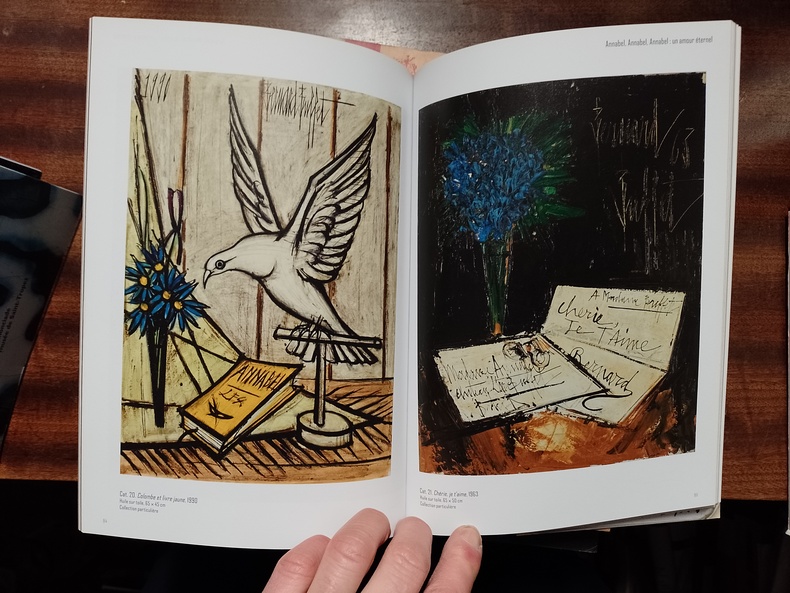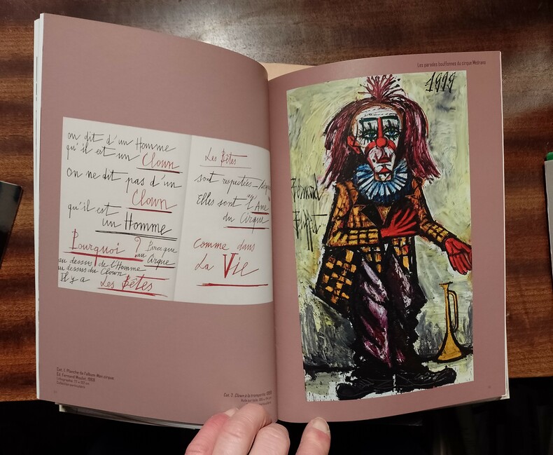Paris, Somogy Editions d'Art, 2016, 19 x 26,5, 160 pages sous couverture rempliée illustrée. Iconographie noir & blanc et couleurs. Catalogue publié à l'occasion de l'exposition présentée au Musée de Montmartre - Jardins Jean Renoir du 18 octobre 2016 au 5 mars 2017. Complet de son errata - tiré à part. "Tout au long de sa vie, Bernard Buffet a revisité les lieux et thèmes de son enfance. Montmartre bien sûr, de la place Pigalle où il naquit en 1928 aux Batignolles où il grandit, jusqu’à cette maison du 20, rue Cortot, voisine du Musée de Montmartre, qu’il habita durant dix ans ; le cirque qu’il déclinera en série de 1955 à la fin des années 1990, avec les parades bouffonnes du Cirque Medrano ; ou encore les intérieurs et natures mortes, dont il déstructura l’espace et pour lesquels il inventera une apesanteur silencieuse en résumant le motif à son trait le plus épuré et incisif. Les principaux rendez-vous du peintre avec lui-même et avec le monde qui le hante dessinent le parcours original de ce génie polymorphe et protéiforme. Le catalogue revient notamment sur ses relations fusionnelles avec le monde de la littérature et du théâtre, son travail acharné dans l’atelier Lacourière et Frélaut à Montmartre, son amour pour Annabel, épouse et égérie ; les promenades solitaires recomposées dans ses paysages…"