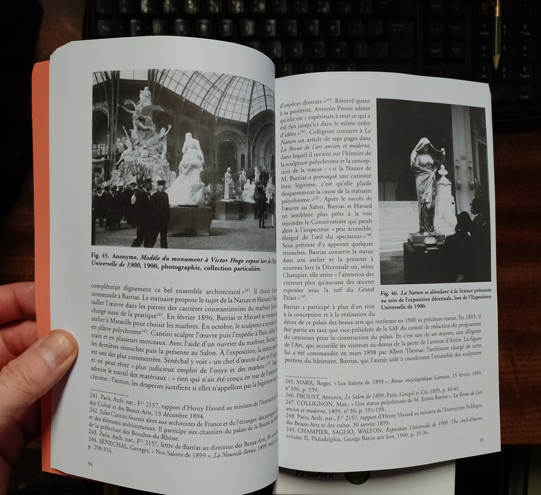 Mare & Martin, 2025, 16 x 24,5, 306 pages cousues sous couverture souple illustrée. Iconographie noir & blanc et couleurs. "Fils d'un modeste peintre sur porcelaine, Louis-Ernest Barrias suit la voie tracée par son frère Félix, Grand Prix de peinture en 1844, et remporte en 1865 le Prix de Rome de sculpture. Il devient par la suite l'un des sculpteurs les plus célèbres de son temps et une figure éminente du milieu … Fils d'un modeste peintre sur porcelaine, Louis-Ernest Barrias suit la voie tracée par son frère Félix, Grand Prix de peinture en 1844, et remporte en 1865 le Prix de Rome de sculpture. Il devient par la suite l'un des sculpteurs les plus célèbres de son temps et une figure éminente du milieu artistique parisien. Intéressé par toutes les applications de la sculpture, des arts décoratifs à la statuaire monumentale, il reste toute sa vie attachée à une tradition sculpturale naturaliste et figurative, qu'il enseigne à l'Ecole des beaux-arts jusqu'à sa mort. Abondant et éclectique, son oeuvre témoigne de l'extraordinaire développement de la sculpture dite "académique" à la fin du XIXe siècle. Son "infortune critique" illustre l'abrupt désamour dont cet art est bientôt l'objet. Vivement critiqué par certains de ses contemporains, puis tombé dans l'oubli, Barrias n'avait, jusqu'à présent, jamais fait l'objet d'une publication monographique. Cet ouvrage, adapté de notre thèse, se propose de mettre en lumière la carrière et l'oeuvre d'un des sculpteurs favoris de la Troisième République, dont l'art, avant d'être rejeté, a été l'expression des préoccupations et des goûts de son époque."