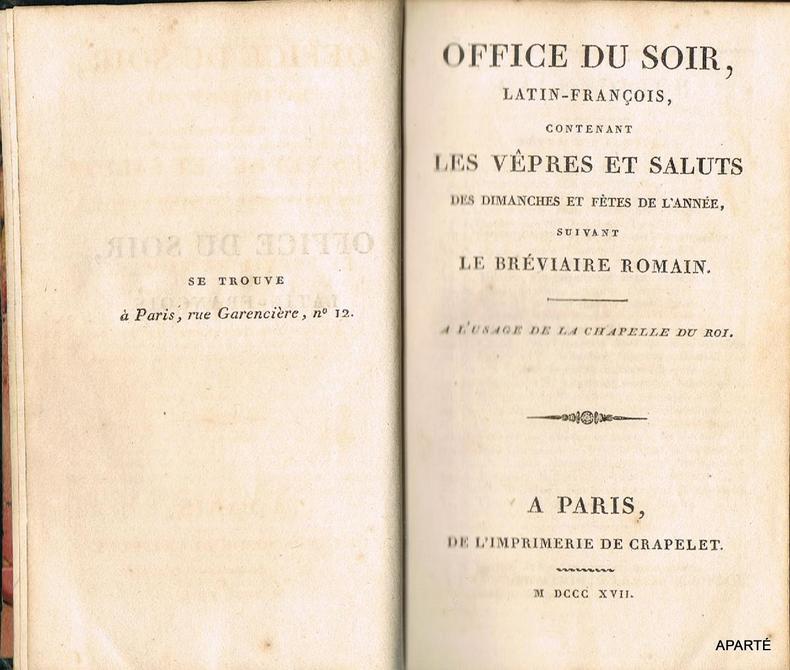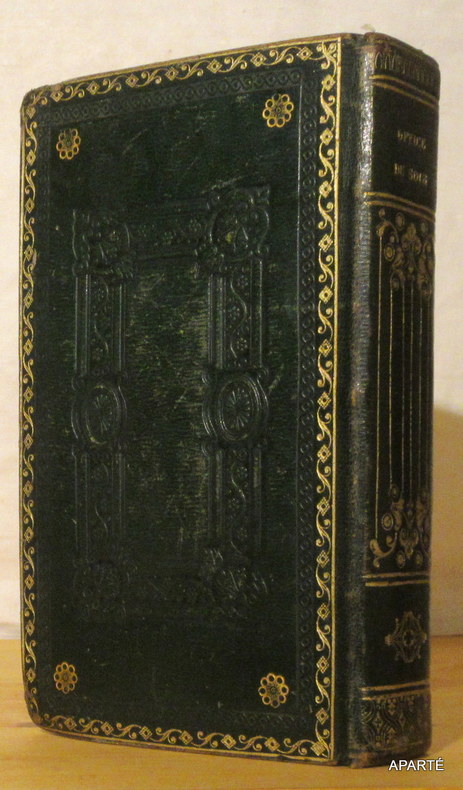 Paris de l'imprimerie de Crapelet 1817 un volume in-12° (8,8 x 14,4cm), XIV 512 pp. Reliure ancienne en maroquin vert, dos lisse richement orné, plats ornés de filet, de guirlande et de petits fers d'angle dorés ainsi que d'un décor de type floral estampé à froid, roulette sur les coupes, tranches dorées. (reliure frottée au niveau des coins et au centre du premier plat, feuillets faiblement et uniformément brunis, rousseurs pâles, cerne claire marginale à un feuillet, rares salissures). Texte sur deux colonnes. Frontispice.