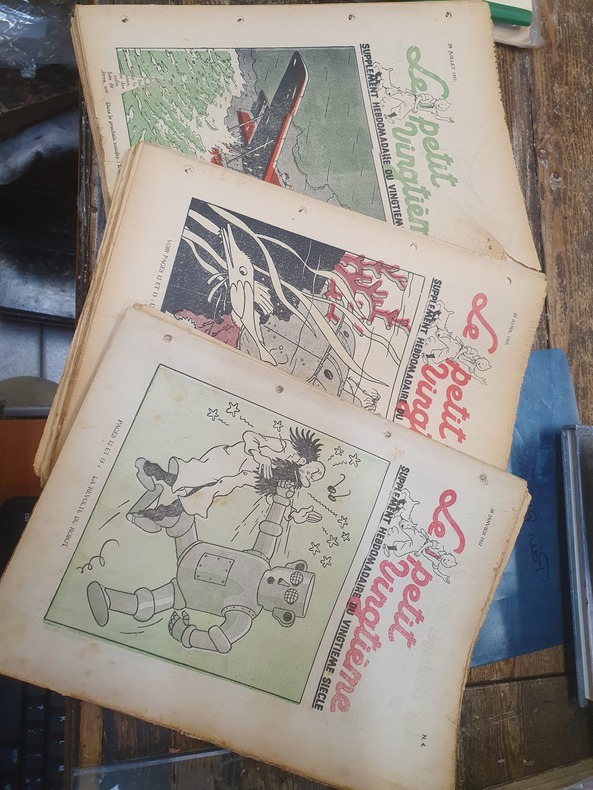 37 journaux du Petit Vingtième, troués (pour une mise en classeur ancienne , couvertures en bon etat, hormis les deux trous, quelques exemplaires moins beaux (déchirures d'usage ) , papier non cramé, numeros 4,5,6,9,10,11,12,13,17,20,21 à 42, 44 à 46, 48, 49,50, photos du lot sur demande;