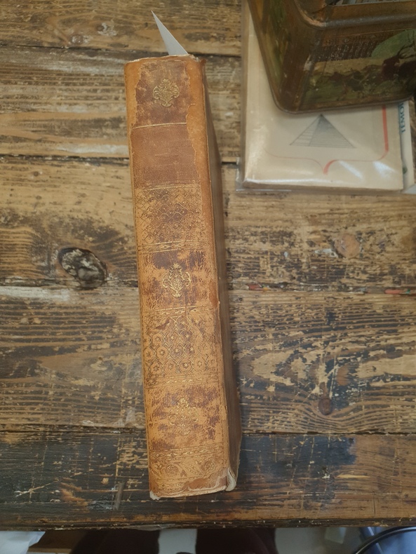 Dos et coins frottés. Etiquette avec des manques. Les plats se déchirent à la charnière avec le dos. Passablement de rousseurs. Tampons sur le faux titre.