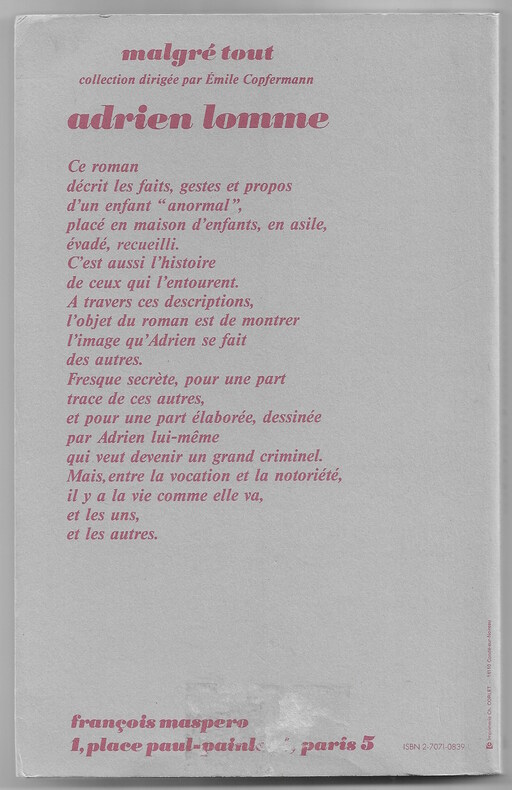François Maspero - Malgré tout 1977 Broché - Couverture rempliée - 228 pages Bon état - 4e plat trace étiquette 257 g