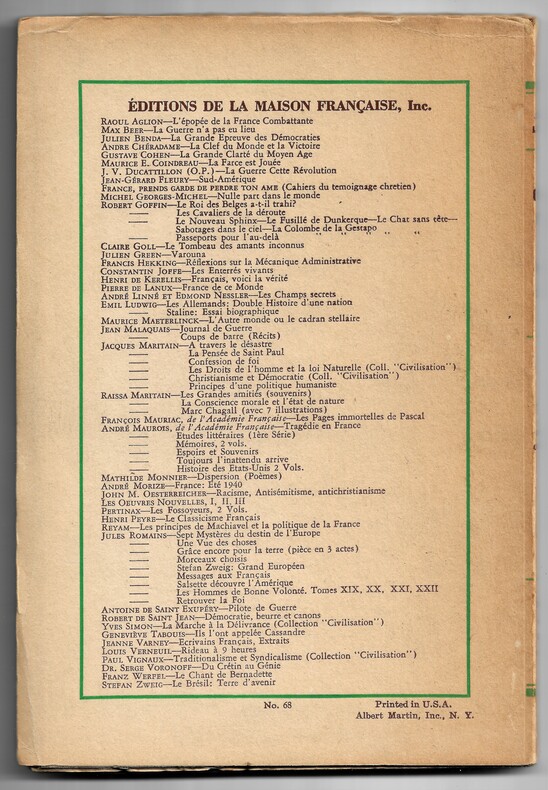 "Editions de la maison française - Collection ""civilisation""" 1943 Broché - 108 pages Bon état - Couvrture brunie 159 g