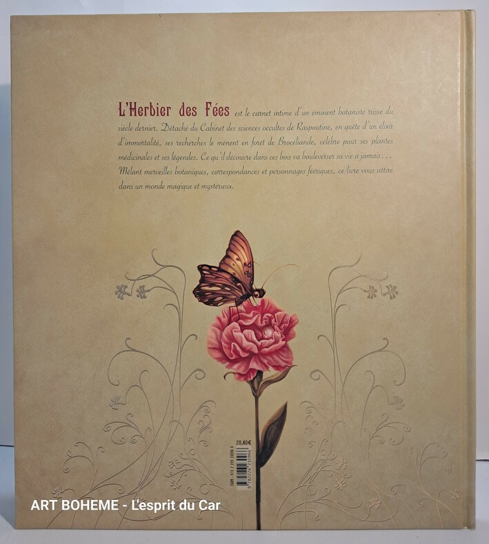 "L'Herbier des Fées est le carnet intime d'un éminent botaniste russe. Détaché du cabinet des sciences occultes de Raspoutine, en quête d'un élixir d'immortalité, ses recherches le mènent en forêt de Brocéliande, célèbre pour ses plantes médicinales et ses légendes. Ce qu'il découvre dans ces bois va bouleverser sa vie à jamais... Benjamin Lacombe crée ici un univers exceptionnel, mêlant merveilles botaniques et personnages féériques. Peintures à l'huile, dessins à la plume, planches aquarellées s'épanouissent, par un jeu de calques et de découpes, en un livre d'une grande beauté formelle."