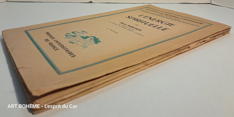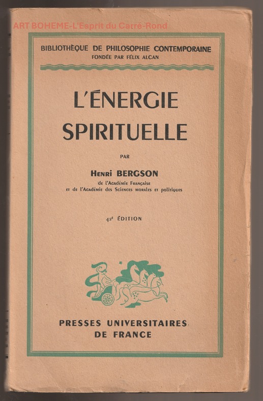 Lot de 4 titres dans la collection Bibliothèque de philosophie contemporaine.- L’évolution créatrice. - L’énergie spirituelle. essais et conférences. - Matière . - Les deux sources de la morale et de la religion ; Essais sur les données immediates de la conscience, (chez Presses Universitaires de France). Paris, Félix Alcan - PUF 1932-1930-1928-1948, 230x145mm, broché. Parfait état, comme neuf .