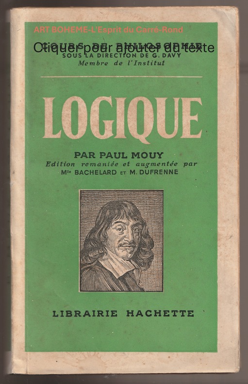 4eme édition revue, 1968 Contents, Chapitres : Notions préliminaires - Le calcul classique des propositions - Les calculs non classiques - Analyse des propositions - Prédicats, classes, relations - Robert Blanché (1898-1975) est un philosophe et logicien français. - Ancien élève de l'École normale supérieure (promotion 1919), Robert Blanché a été professeur à lUniversité de Toulouse. C'est un spécialiste de l'épistémologie et de la logique. Il a appartenu au comité de patronage de Nouvelle École. - Il a surtout écrit des livres d'initiation à la logique et à son histoire, abordées d'un point de vue philosophique. Ses premières réflexions concernent également les aspects épistémologiques des notions de « corps », de « mental », de fait physique ou psychique. Critique par rapport à la logique formelle, devenue désormais un calcul mathématique, il défend l'idée d'une logique réflexive, plus proche de la logique opératoire spontanée et y apporte sa contribution. En 1966, il publie un ouvrage : Structures intellectuelles. Il y parle de l'hexagone logique qui, comportant six postes, est une figure plus puissante que le carré logique traditionnel qui en comporte uniquement quatre. Dans cette uvre, Robert Blanché oppose la pensée dite commune à la pensée scientifique. (source : Wikipedia) couverture à peine jaunie avec 2 petites taches discretes sur le plat inférieur, la couverture reste en bon état, intérieur propre, papier à peine jauni, cela reste un bon exemplaire de ce texte important de Robert Blanché dans l'histoire de la logique - format de poche