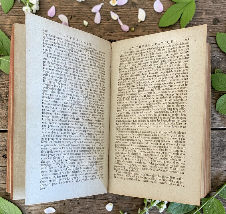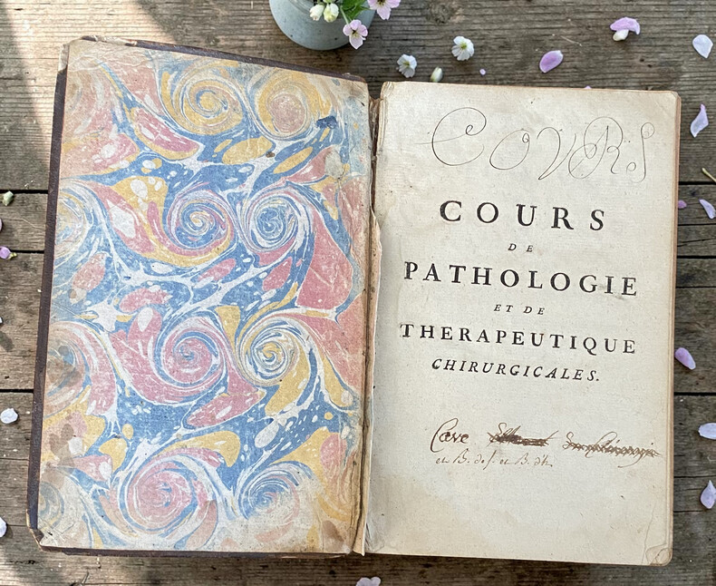 Cours de pathologie et de thérapeutique chirurgicales par Hévin (1780), intérieur en bon état, mais la couverture a souffert