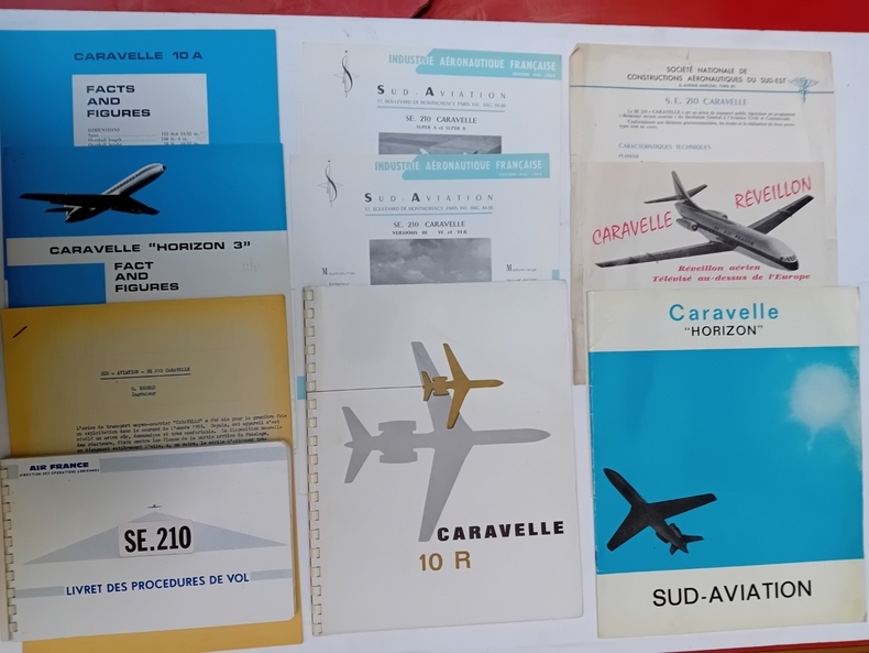 CARAVELLE: SUD-AVIATION: I. Les usines II. Fabrication Caravelle. S.N.C.A. du SUD-EST: S.E.210 CARAVELLE. CARAVELLE 10A FACTS AND FIGURES. "HORIZON 3": FACT AND FIGURES. Industrie Aéronautique Française Edition Mai 1963: SE.210 CARAVELLE Versions II - VI et VI R. SUPER A et SUPER B. Caravelle réveillon aérien au-dessus de l'Europe. CARAVELLE All-weather landing. G. BRUNER Ingénieur: SUD-AVIATION - SE210 CARAVELLE. CARAVELLE SUD-AVIATION: production. CARAVELLE 10R. Caravelle "HORIZON". Jacques GAMBU et Jean PERARD: Super Caravelle 10 B-3. AIR FRANCE SE.210: Livret des procédures de vol.