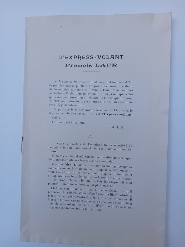 Paris, Imprimeries Techniques, 1910. In-8 (15x24 cm.), 8 pages.
