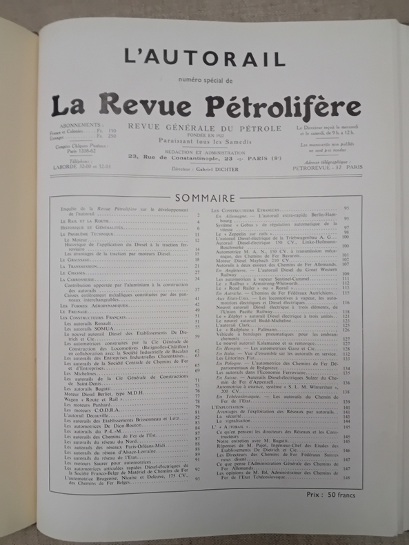 Sommaire : Introduction ou le point de vue de l'exploitant, II- Autorails a vapeur, III- Autorails sur pneus, IV- Prototypes et petites séries sans suite, V- Autorail type Amphibie, VI- Aciéries du Nord, VII- Berlet, VIII- Bugatti, IX- Charentaises, X- De Dietrich, XI- Decauville Classification Dewey : 70.49-Presse illustrée, magazines, revues