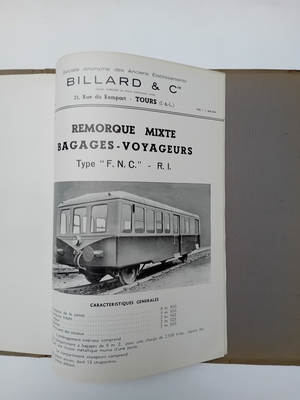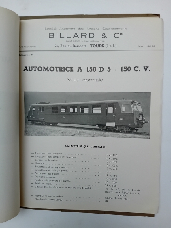 Tours, Billard, 1952. In-4, 19 prospectus illustrés d'une photo, sous chemise constructeur.