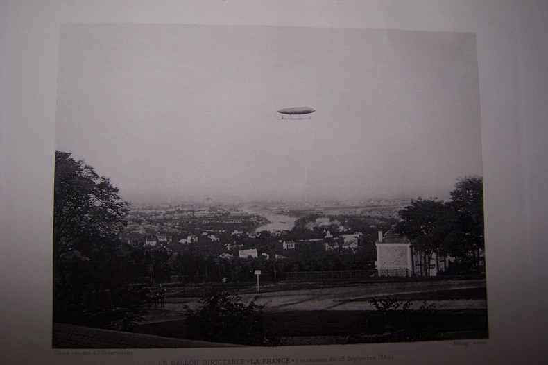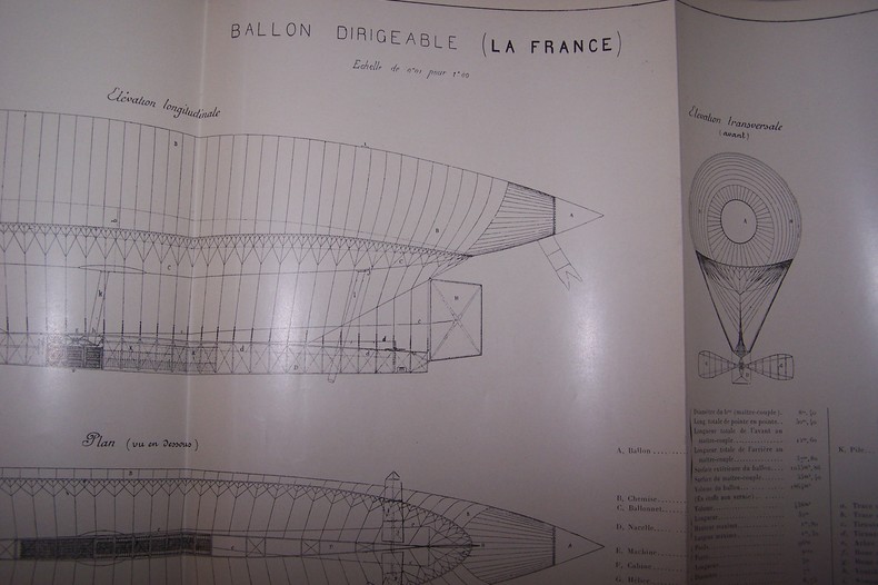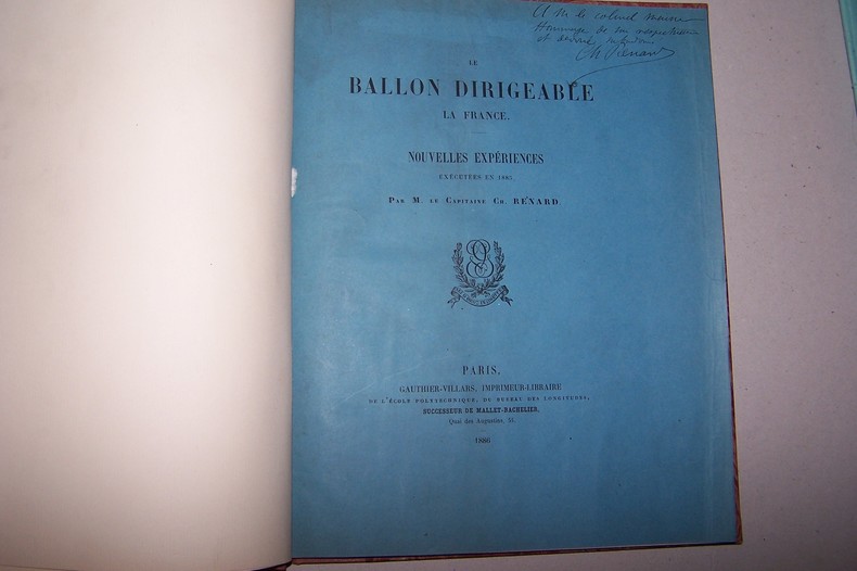 Deux ouvrages reliés en un volume. Paris, Gauthier-Villars, 1886. In-4, 7 pages, 1 carte, 2 graphiques, héliographie horstexte "le ballon dirigeable La France" cliché exécuté à l'observatoire. Envoi. Paris, Gauthier-Villars, 1904. In-4, 54 pages, 11 figures in-t. (dont trois photographies du dirigeable La FRANCE), 3 planches hors-texte (plan de la nacelle et de la cabine, plan trois-vues du ballon), demi-percaline.