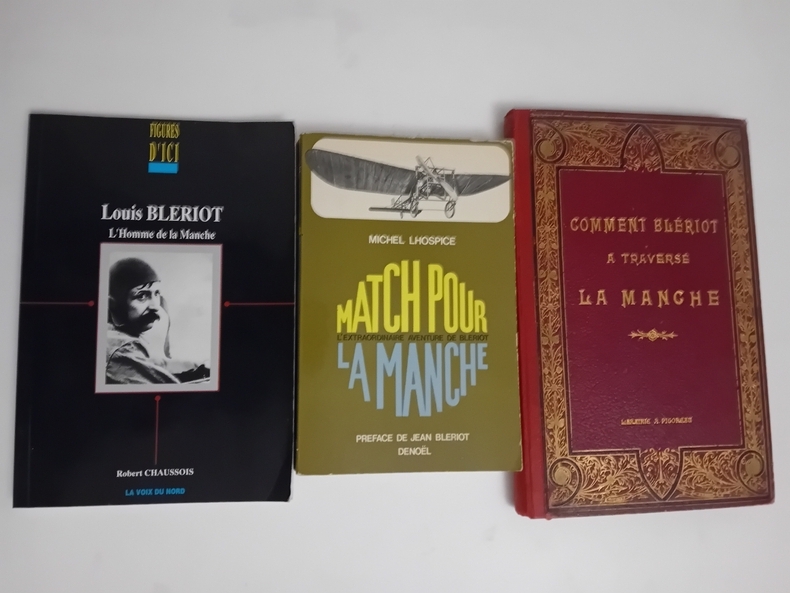 On joint: Michel LHOSPICE: Match pour la Manche, Préface de Jean Blériot, Denoël, 1964. Robert CHAUSSOIS: Louis Blériot, l'homme de la Manche, La Voix du Nord, 1991. Charles FONTAINE: Comment Blériot à traversé a Manche, Librairie Aéronautique, 1909.