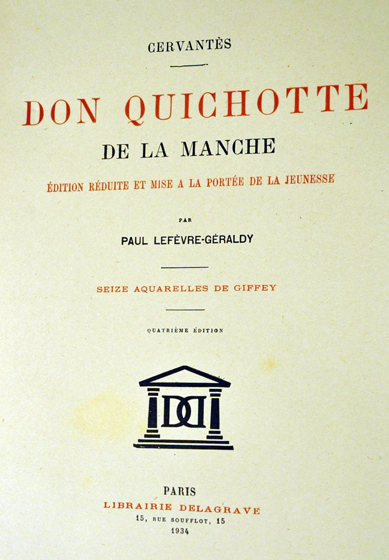 1934 Aquarelles de Giffey. Edition réduite et mise à la portée de la jeunesse par Paul Lefèvre-Géraldy. Paris Delagrave. 1934, cartonnage éditeur, 127 pages. Mention de 4e édition. In-4 percaline éditeur. 16 aquarelles en couleurs . Premier plat illustré d'un décor polychrome. Tres bon état .