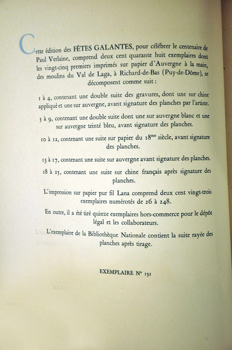 Aux fortes originales de : Marianne Clouzot, Roger Ferrero, Berthommé Saint-André, Perraudin, Schem, Raoul Serres en 6 volumes sous (3 boitages) numéroté 1700 exemplaire n°1149, tres bel état contient :vers de jeunesse poemes saturniens fetes galantes, la bonne chanson/ romances sans paroles, sagesse, jadis et naguere, amour parallelement bonheur, chansons pour elle liturgie intimes odes en son honneur élégies dans les limbes, chair dedicaes epigrammes, invectives poesies diverses.