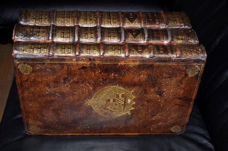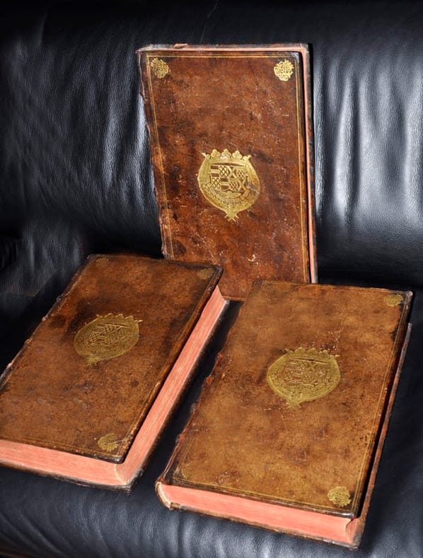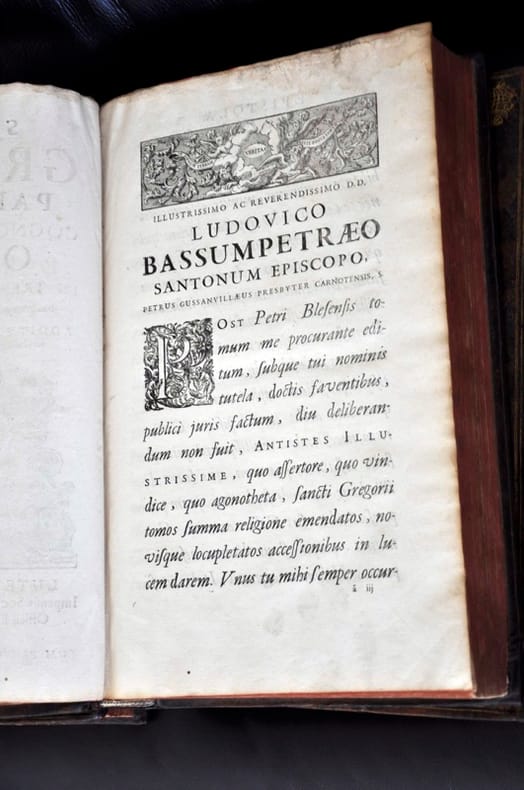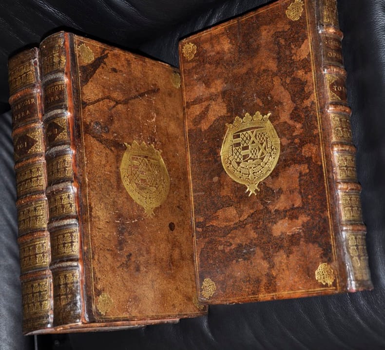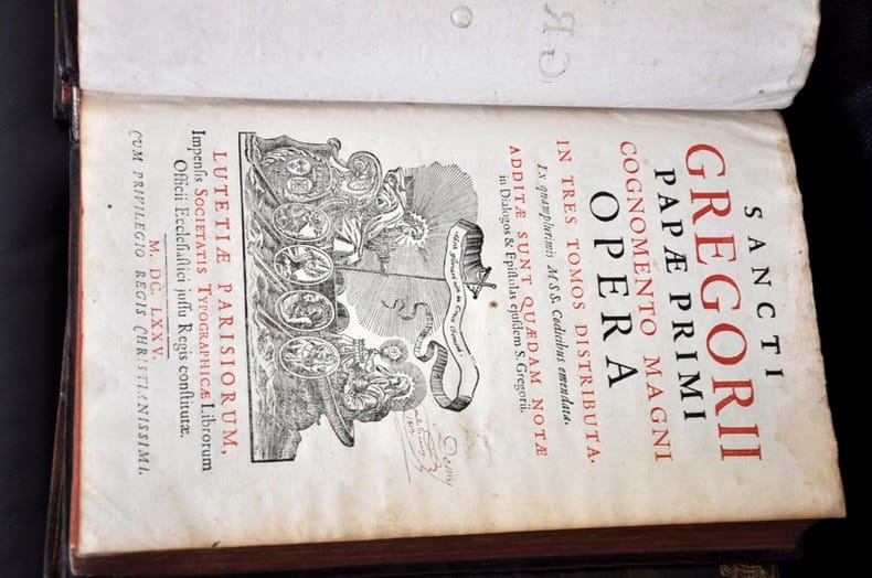 1675 Lutetiae Parisioum 1675Saint Gregoire Oeuvres Trois volumes reliés d'époque armoiriées , Dos au chiffre , format in folio : 25 x 39 , 5 cmTres belle reliure , ouvrage bien complet