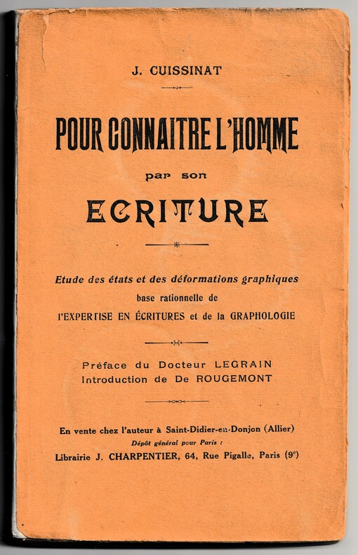 Dos "restauré" au papier collant blanc, jauni, qq traits au crayon. Solide, complet. RARE - GRAPHOLOGIE - PSYCHOLOGIE