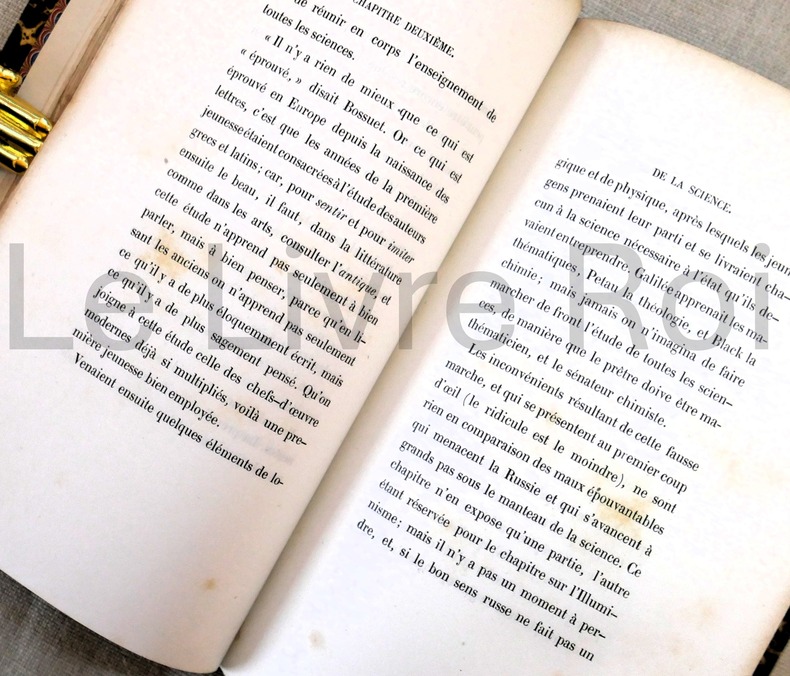 In8 dos basane à nerfs. titres et fleuron dorés, VII+196 pp. Contient un chapitre sur l'Illuminisme. Un ex-libris