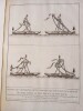 Premier tirage de l’un des plus beaux livres de fêtes du XVIIIe siècle, édité à l’occasion du mariage de Madame Elisabeth de France avec l’Infant d’Espagne. «Important livre de fêtes parisiennes» (Bull. Morgand et Fatout, 11011). Les planches gravées par J.-Fr. Blondel représentent: le plan géométral de la partie de la Seine où fut donnée la fête; le temple de l’Hymen, décor du feu d’artifice placé sur le terre plein du Pont-Neuf; élévation géométrale du trône construit pour que Leurs Majestés voient la fête, exécuté sur les dessins de Gabriel; le plan et l’élévation géométrale du salon de musique élevé au milieu de la rivière entre le Pont-Neuf et le Pont-Royal; les bateaux illuminés. La planche 8 donne l’élévation géométrale de la terrasse du bord de l’eau où se trouvaient les tentes pour la suite de Leurs Majestés. La planche 9 nous offre une vue générale de cette fête sur la Seine avec tous ses décors, illuminations et feux d’artifice. Les dernières planches nous montrent le bal de l’Hôtel de ville dans la nuit du 30 au 31 août, avec plans et coupes. En dehors de ces treize planches, l’édition est ornée d’un fleuron dessiné par Bouchardon et gravé par Soubeyran, et d’une grande vignette, servant d’en-tête, dessinée et gravée par J. Rigaud, représentant une joute sur la Seine. Ces ouvrages de luxe étaient habillés plus ou moins somptueusement. Le souverain et les princes de sa famille recevaient des exemplaires recouverts de maroquin orné à la dentelle, les ministres des maroquins moins richement décorés et les simples évêques des volumes modestement reliés en veau – tous portant cependant au centre des plats les armes de la cité qui avait financé l’entreprise. Superbe exemplaire revêtu d’une reliure en maroquin de l’époque aux armes de la ville de Paris. Provenance: de la bibliothèque Léon Gruel avec ex libris gravé au second contreplat.