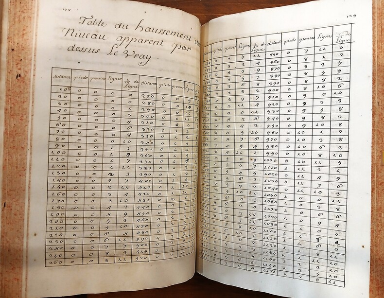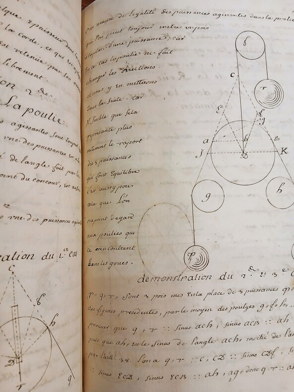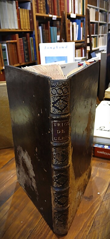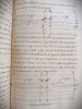 de CLAPIES Jean, Traité de la Trigonométrie rectiligne, du Nivellement, Et de la Méchanique. A Montpellier, le 1er février 1724. Manuscrit relié (285x200mm) pleine basane de l'époque, dos à 5 nerfs avec pièce de titre doré, tranches mouchetées. 2fbnc, 1f titre, 294 pages manuscrites à l'encre noire, 2fbnc. Manuscrit de l'époque paginé en haut à droite et à gauche, non signé, 25 lignes par page. Inclut 3 cours bien distincts de l'astronome et ingénieur montpelliérain Jean de Clapiès (1670-1740) : Traité de trigonométrie rectiligne (p1 à p126), Traité du Nivellement (p127 à p185), Traité de méchanique (p186 à p294). Co-fondateur -avec Jean Astruc, Jean de Plantade et François Xavier Bon- de la Société Royale des Sciences de Montpellier en 1706, Clapiès est nommé professeur de mathématiques en 1718 et devient correspondant de l'Académie des Sciences de Paris. La Société à laquelle appartient Clapiès est divisée en 5 classes : Mathématiques, Anatomie, Chimie, Botanique et Physique et se situe en deuxième position après celle de Paris. Chaque année un mémoire est envoyé à l'Académie Royale des Sciences de Paris pour publication, le premier qui parut en 1707 fut celui de Jean de Clapiès, chacun de ces travaux (de 15 pages environ) étant accompagné de planches et de figures. Montpellier fut au XVIIIè siècle un foyer de recherche scientifique très intense, auquel participa le célèbre savant Jean-Antoine Chaptal (1756-1832). Alors que le traité initial du manuscrit retourne de la trigonométrie rectiligne, on peut observer que ce fut Jean de Clapiès qui le premier, appliqua cette discipline à la construction graphique des cadrans solaires. L'objet du second traité porte sur le nivellement, science ayant pour objet de déterminer de combien un point est plus près ou plus éloigné du centre de la terre (Puissant). Le traité de mécanique, dont la caractéristique principale est l'étude des forces qui interagissent sur des corps ou des masses, prend pour objets d'analyse ceux du levier, du plan incliné et de la poulie. Le manuscrit est agrémenté d'une centaine de figures dessinées à la plume. Il se compose d'une suite de problèmes, corollaires, suppositions, démonstrations et tableaux. Écriture tout à fait lisible à l'encre noire. Plats usagés avec des manques, dos assez bien conservé, intérieur en parfait état.