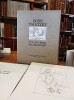 Versailles, éd. Hautefeuille pour L'Association française Buchenwald-Dora, 16 octobre 1978, expl. n° 575/1000 sur vélin pur chiffon des Papeteries Arjomari, gd. in-4 non relié, en feuillets, sous emboîtage remplié cartonnage pleine toile grise avec 1 dessin de l'auteur collé sur la première de couv et texte en noir éd., le tout fermé par trois rubans toile grise éd., (4) - 12 - 4 pp, ill. par 111 dessins dont 98 au crayon noir de scènes au camps de concentration, 8 portraits en noir de ces amis de camps et 5 dessins rehaussés en coul de scènes au camps, avant-ropos de Marcel Paul, préface de Julien Cain, liste des 111 dessins avec le nom de ceux-ci, bel ENVOI et SIGNATURE du peintre à madame Perriand, épouse de Roger Perriand, un des anciens co-détenus du peintre à Buchenwald, Boris Taslitzky (1911-2005) est né à Paris, de parents russes immigrés après la révolution manquée de 1905, il commence à peindre adolescent et entre à l’école des Beaux-Arts de Paris en 1928. En 1933, il adhère à l’Association des écrivains et artistes révolutionnaires puis entre, en 1935, au PCF. Dès les années 1930, ses peintures et dessins sont portés par le combat pour une société plus juste. Mobilisé lors de la déclaration de guerre, Taslitzky est fait prisonnier en juin 1940. Il parvient à s’évader et s’engage dans la Résistance au sein du Front national de lutte pour la libération et l’indépendance de la France. Il est arrêté en novembre 1941 et condamné à deux ans de prison ; il passe par les prisons de Riom, Mauzac, puis au camp Saint-Sulpice-la-Pointe, où il participe aux activités culturelles clandestines, produisant des peintures et des dessins. En juillet 1944, il est déporté à Buchenwald. Il y réalise plus de deux cent dessins grâce à Pierre Mania, un artiste détenu, qui lui fournit le matériel nécessaire. Ces activités, évidemment interdites, sont couvertes par les organisations clandestines et la solidarité des détenus. L’ensemble rassemble des scènes du quotidien à Buchenwald, de temps de travail, de repos, ainsi que de nombreux portraits, certains esquissés, d’autres particulièrement achevés et d’une présence saisissante, comme ceux de Julien Cain et de Paul Goyard, artiste, conservés dans les collections du mahJ. L’artiste participe à l’insurrection qui mène à la libération du camp en avril 1945. Ces dessins que l’artiste réalise alors, s’attachant à représenter les corps de ses codétenus épuisés, ne parvenant plus à se maintenir debout, ou en proie à un profond désespoir. Leurs visages disparaissent alors cachés derrière les mains, comme tentant de s’extraire de leur environnement immédiat. TRES RARE exemplaire numéroté et surtout agrémenté d'un envoi écrit et signé de sa main, à l'épouse d'un ancien détenu. Très bon état, tant de l'emboîtage que du papier