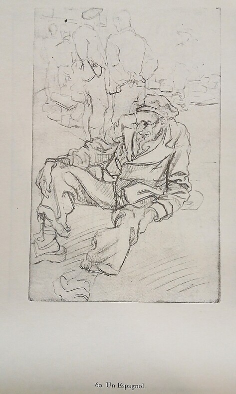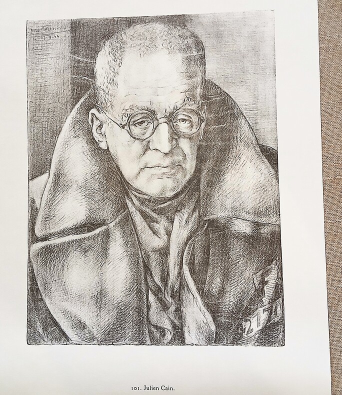 Exemplaire in-4 en feuillets libres (330x260mm) sous coffret toilé écru à rabats, titre au dos et sur le plat supérieur, vignette collée. Tiré à 1000 exemplaires, celui-ci non numéroté. Impression offset. 11 pages (avant-propos par Marcel Paul et préface par Julien Cain), bien complet des 111 dessins hors-texte de Boris Taslitzky faits à Buchenwald. Arrêté le 13 novembre 1941, condamné à 2 ans de prison, Boris Taslitzky (1911-2005) devenu captif demeurera jusqu'en avril 1945 successivement à la prison de Riom, au camp de Saint-Sulpice-la-Pointe, puis en Allemagne à Buchenwald. Détenu politique, à l'automne 1944, il y rencontre -au premier étage du block 40, dans le lavabo ou waschraum- Julien Cain l'administrateur général de la Bibliothèque Nationale de France. Boris Taslitzky met son art au service de ses idées et représente en plus de 100 dessins la vie et surtout la mort au camp, des hommes assis leur journée de travail terminée, la gamelle vide. Encore étudiant il copie au Louvre les œuvres de Rembrandt, Watteau, Delacroix, Zurbaran, Courbet, Géricault et Rubens. Très bon exemplaire.