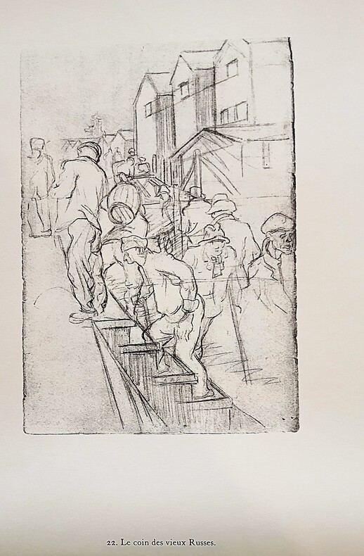 sous emboîtage remplié à 3 rabats, cartonnage pleine toile grise (26 cm X 33,8 cm) avec un dessin N&B dans l'auteur contrecollé sur le 1er plat , feuillets libres, 4 + 4 + 11 pp + 111 planches illustrées de dessins de l'auteur 106 en N&B et 5 dessins rehaussés en couleurs, les dessins représentent des scènes de vie au camp ou des portraits de déportés. Avant-propos de Marcel Paul, préface de Julien Cain.