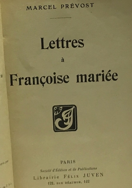 Ernest Flammarion 1927 1927. Marcel Prévost: Lettres à Françoise mariée/ Ernest Flammarion 1927 Référence: LMA16T. Marcel Prévost: Lettres à Françoise mariée/ Ernest Flammarion 1927