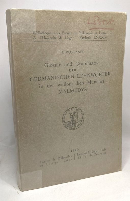 Faculté de philosophie et lettres / E. Droz 1940 in8. 1940. Broché.