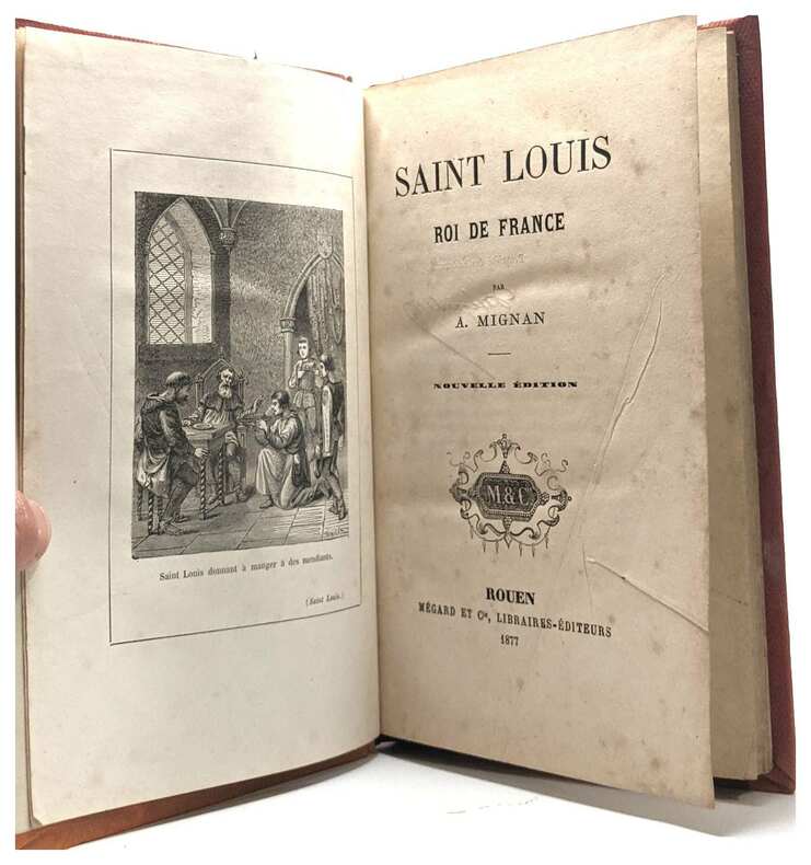 Saint Louis, également connu sous le nom de Louis IX, était un roi de France qui a régné de 1226 à 1270. Il est né le 25 avril 1214 à Poissy, en France, et était le fils du roi Louis VIII et de la reine Blanche de Castille. Louis IX est souvent considéré comme l'un des rois les plus éminents de l'histoire de France. Il était réputé pour sa piété, sa justice, sa générosité envers les pauvres et son engagement envers la morale chrétienne. En tant que roi, il a œuvré pour renforcer la justice royale, réformer le système judiciaire et favoriser la paix et la stabilité dans le royaume. Il a également joué un rôle important dans les Croisades. En 1248, il a entrepris la Septième Croisade dans le but de reconquérir Jérusalem. Cependant, la croisade a été un échec, et Louis IX a été capturé par les Mamelouks égyptiens en 1250. Après sa libération en échange d'une rançon, il est rentré en France. En plus de son rôle politique et religieux, Louis IX a également été un mécène des arts et des lettres, soutenant les universités et les intellectuels de son époque. Louis IX est mort le 25 août 1270 à Tunis, en Tunisie, pendant la Huitième Croisade. Il a été canonisé en 1297 par l'Église catholique et est vénéré comme saint patron de plusieurs villes et organisations. Sa fête est célébrée le 25 août. avec un plan dépliant, vol in8. relié, 18x12, bon état intérieur, 401pp, toutes tranches dorées. Plat estampé : "Monastère de la visitation de Rouen" Paris, Adolphe Regnault, 1872 ref/260