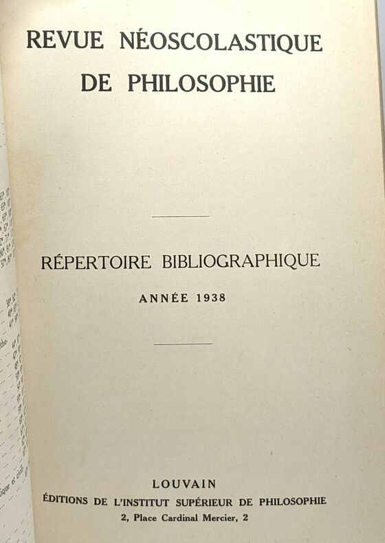 Institut supérieur de philosophie 1937 in8. 1937. Relié. Revue néoscolastique de philosophie - répertoire bibliographique année 1937 + année 1938 (compilées en un volume)