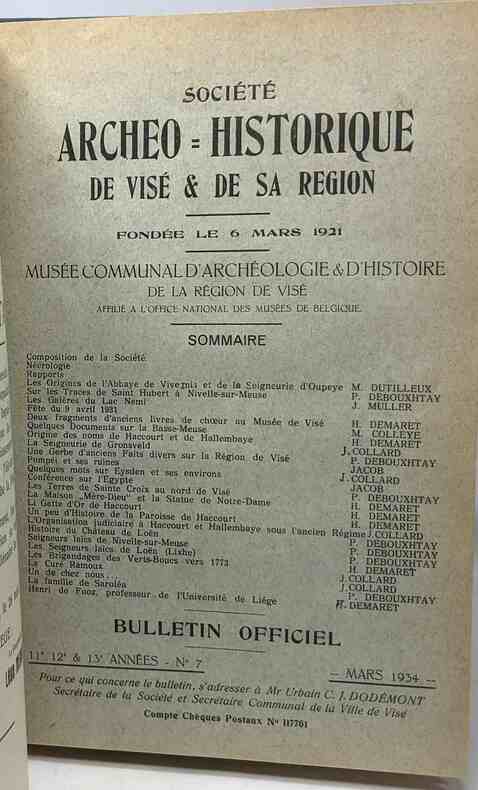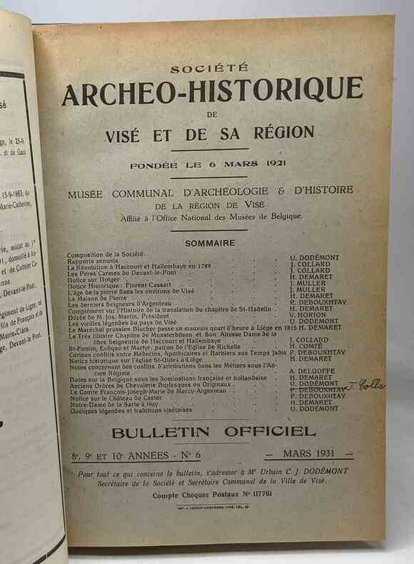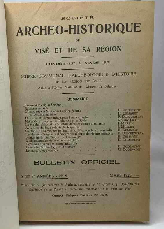 Société archéo-historique de Visé in8. Sans date. Relié.