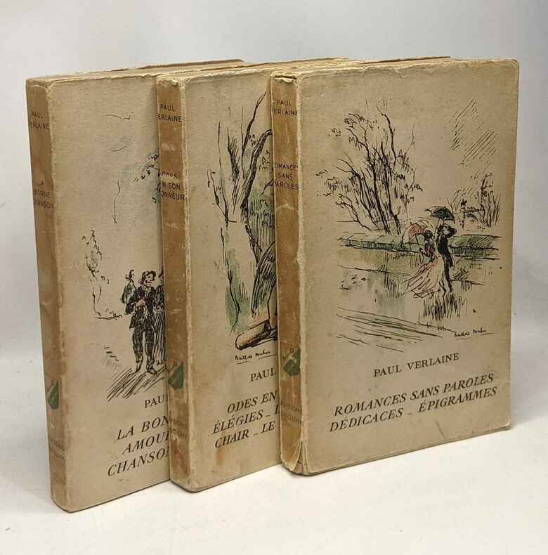 Éditions de Cluny in12. Sans date. Broché. 3 volume(s). volume 37: Romances sans paroles dédicaces épigrammes volume 38: La bonne chanson amour bonheur chansons pour elle volume 39: odes en son honneur élégies dans les limbes chair le livre posthume poèmes divers