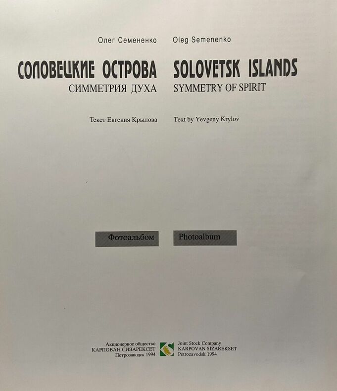 Karpovan sizarekset 1994 in4. 1994. Cartonné. illustré en couleurs - texte en cyrillique et anglais