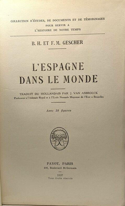 Paris, Payot 1937, 230x140mm, 342pages, broché. Bel exemplaire.