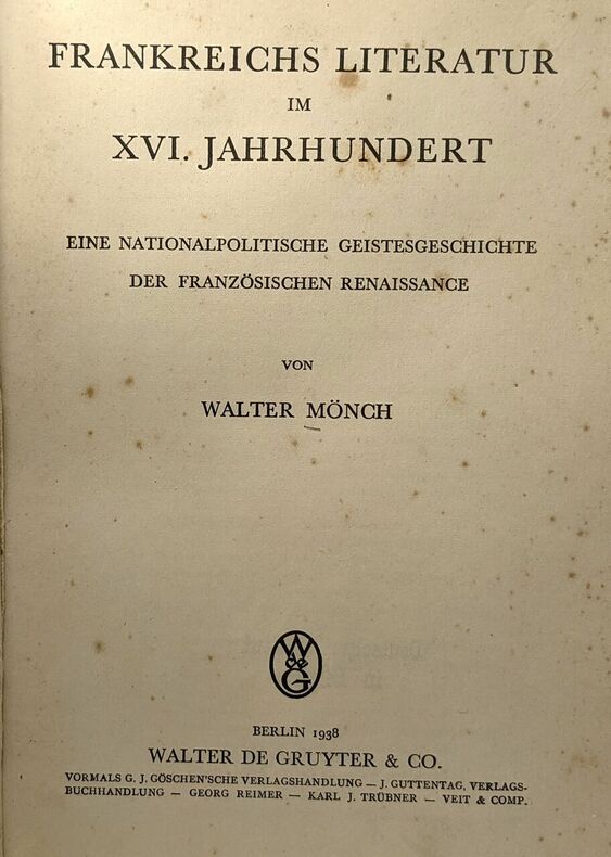 Walter de Gruyter & Co 1938 in8. 1938. Cartonné.