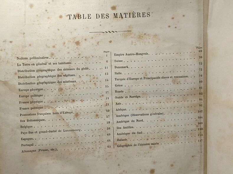 bords frottés coins émoussés intérieur taché de rousseurs pages abîmées fendues sur le premier tiers du livre