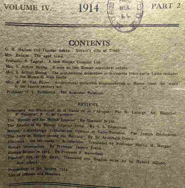 The society for the promotion of roman studies 1914 in4. 1914. Cartonné. 2 volume(s). iconographie en noir et blanc documents dépliants