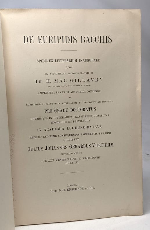 Joh. Enschedé et Fil in8. Sans date. Broché. textes en latin et grec