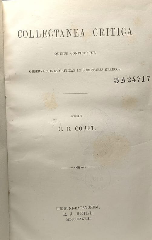 Lugduni-batavorum 1878 in8. 1878. Relié. textes en latin et grec