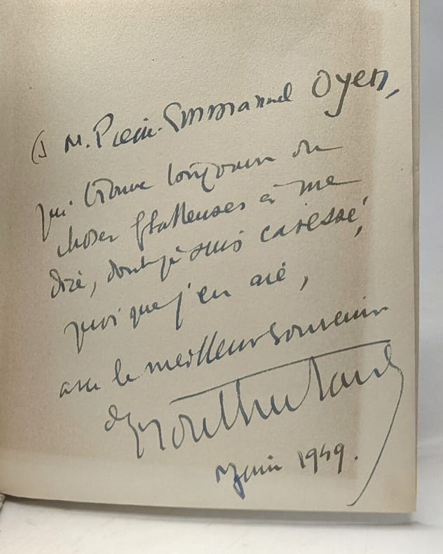 sous papier de soie couverture défraîchie écorchure sur le bords du dos intérieur propre avec hommage de l'auteur