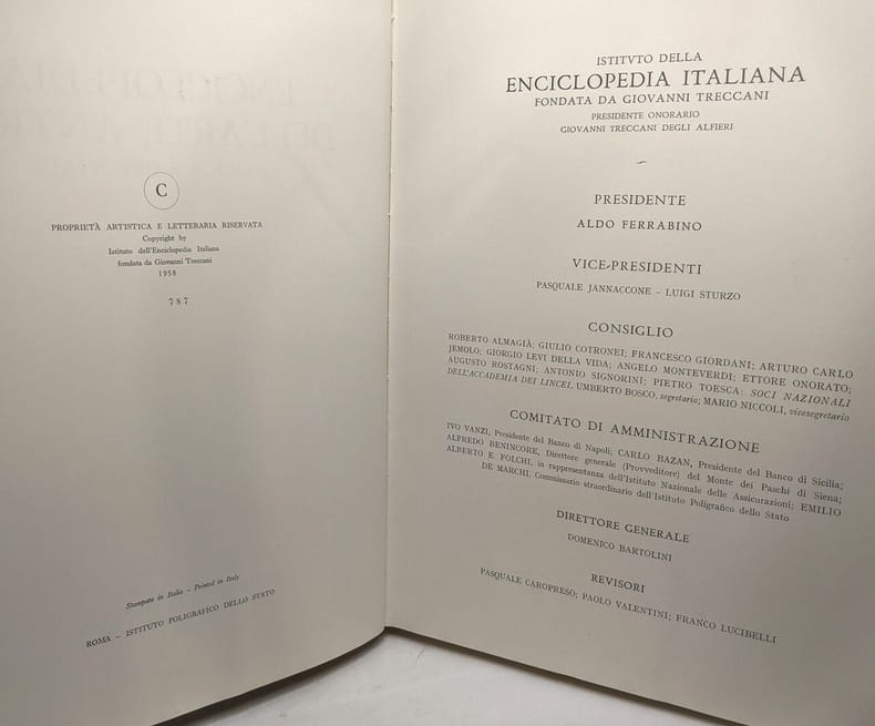 Istituto poligrafico dello stato 1958 in folio. 1958. Reliure editeur. 7 volume(s). abondante iconographie en noir et blanc et en couleurs