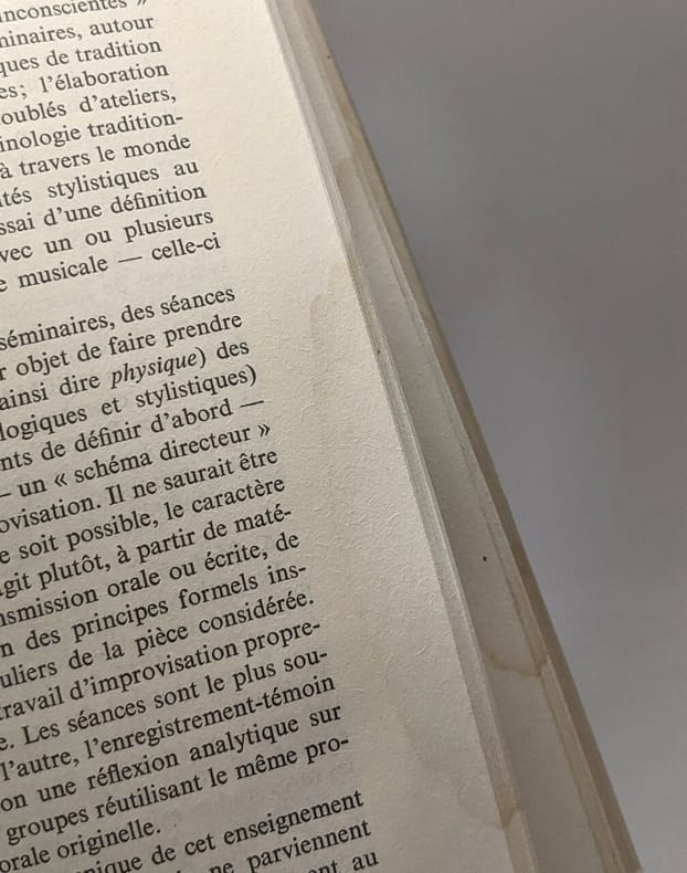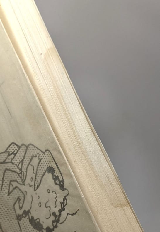 couverture défraîchie salie sous papier de soie mouillure marquée sur la tranche de côté tout le long du livre