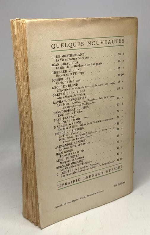 Grasset 1942 in12. 1942. Broché.