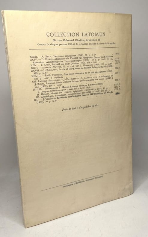 Latomus revue d'études latines 1969 in8. 1969. Broché.
