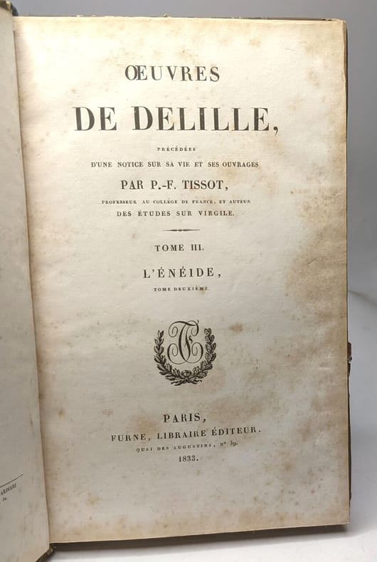 Furne / Paris in8. Sans date. Relié. 8 volume(s). tome 1: Géorgiques tome 3-4: L'énéide tome 5-6: Le paradis perdu tome 7: Les jardins - L'homme des champs tome 8: L'imagination tome 10: La pitié - La conversation - poésies fugitives